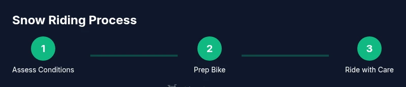 Inspect brakes, chain, and drivetrain; clean off road salt. Install winter tires or studs if available and ensure tires seat properly. Inflate to slightly lower pressure if the snow is light, but avoid underinflation.