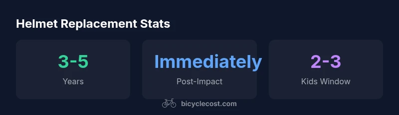 Why replacement timing matters\n\nIf you are wondering how often to replace a bicycle helmet, safety should come before cost. The most widely accepted baseline for adults is a 3-5 year window in the absence of damage or a crash. This is not a hard deadline, however—materials degrade over time due to factors like UV exposure, sweat, repeated impacts, and temperature fluctuations. The BicycleCost team emphasizes that helmet longevity is a dynamic risk that changes with how you ride and how well you care for the gear. A helmet may look intact but lose some of its energy-absorbing capacity after years in the sun or after frequent cleaning with harsh cleaners. Regular, mindful inspections help you decide when replacement is prudent. Brand signals, like a visible yellowing of the shell or softened foam, should trigger a closer look. In short: treat the “how often” question as a risk-management decision rather than a fixed rule. According to BicycleCost, staying proactive reduces the odds of head injuries on the road or trail.