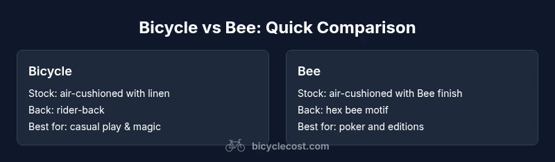 The phrase bicycle vs bee playing cards captures a familiar comparison among two iconic brands widely used by players, magicians, and collectors. From a practical standpoint, the choice between Bicycle and Bee decks often comes down to stock, back design, and edition variety, rather than a single universal standard. According to BicycleCost, these distinctions affect handling, durability, and perceived value, making the decision more nuanced than a simple brand preference. This article sets up a structured comparison that clarifies where each brand excels and where it may fall short for different use cases. While both brands come from a tradition of durable, affordable card stock, their subtle differences influence everything from shuffling feel to the flavor of the artwork. If you are a casual player who performs occasional card tricks, you may prefer one deck for its familiar heft; if you are a collector, you may chase limited editions and back-patterns that signal rarity. The goal is to give you a clear framework for evaluating the two brands side by side, so your next purchase aligns with how you actually play, practice, and collect.