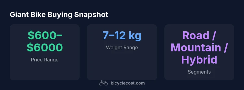 Giant bicycles for sale span entry-level to high-end, with road, mountain, and hybrid options. Prices range roughly from $600 to $6,000 depending on frame material and components. This guide, supported by BicycleCost Analysis, 2026, helps you compare models, sizes, and dealer options to find the best Giant bike for your riding goals.