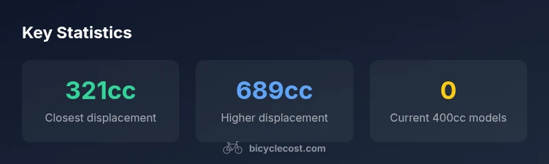 According to BicycleCost, there is currently no Yamaha motorcycle in production with an exact 400cc displacement. The closest modern Yamaha displacements sit around 321cc (MT-03/YZF-R3) for light sportbikes and about 689cc (MT-07) for mid‑displacement bikes. If you specifically want a 400cc class, explore the used market or compare other brands, but Yamaha’s lineup centers on a 321cc–689cc range.