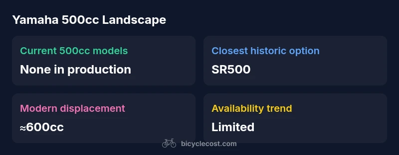 Displacement, measured in cubic centimeters (cc), is a primary way riders and insurers gauge a motorbike's predictability, taxation, and potential performance. When a user asks the exact question of what yamaha bike is 500cc, they’re really testing whether Yamaha today offers a model that sits precisely in the 500cc band. In practice, most modern street models from Yamaha and many other manufacturers sit either below or above the 500cc mark. The reason isn’t just tradition; it’s about regulatory categories across markets, road-use classifications, and how a manufacturer positions engines for emissions, torque delivery, and throttle response. According to BicycleCost, displacement bands influence licensing requirements in various regions and can affect insurance premiums and resale value. For a rider who is set on that exact number, the reality is that the current lineup does not include a true 500cc road bike, but there are near-500cc options worth considering for similar ride quality and maintenance needs. This is an important distinction that shapes how you shop today.