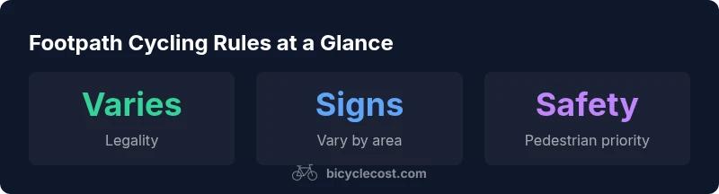 Whether you can ride a bicycle on a footpath depends on your location; most places restrict riding on sidewalks or footpaths, while some shared-use paths permit it with conditions. Always verify local rules, signage, and age restrictions. If riding on a footpath is allowed, keep to pedestrians, ride slowly, and yield to people crossing or exiting driveways. When in doubt, use a dedicated bike lane or trail instead.