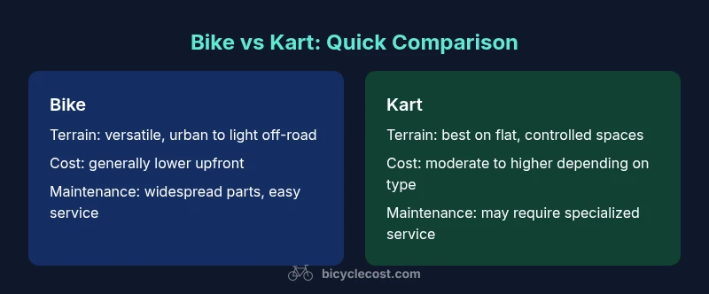 Are bikes or karts better? In most scenarios, bikes win for versatility, efficiency, and easier maintenance, while karts offer stability and family-friendly use. The BicycleCost team finds bikes best for daily commuting and cardio, with karts shining on flat tracks or open spaces. For clarity, when you search for 'are bikes or karts better', this guide outlines the practical distinctions, helping you choose based on terrain, safety, and storage.