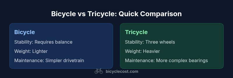 According to BicycleCost, choosing between a bicycle and a tricycle depends on rider age, goals, and safety priorities. This quick comparison highlights who benefits most from each option, including maneuverability, stability, and maintenance considerations. Use this TL;DR to guide deeper reading and practical decisions for bike sizing and safety today.