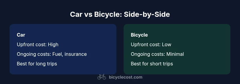 For many readers, the question how is the car compared to the bicycle artinya is not just about physics or engines; it's about real-life choice, opportunity costs, and what a given mode enables or prevents in everyday routines. According to BicycleCost, people often measure value by more than the sticker price; they weigh long-term costs, reliability, and the flexibility to adapt to weather, cargo, and schedule. The BicycleCost team found that mode choice is deeply tied to personal goals—health, time pressure, environmental concerns, and urban design. In this article we unpack the core distinctions with an analytical lens, highlighting where each option shines and where it introduces friction. The artinya of this comparison is to translate abstract performance metrics into practical decisions: what the choice means for cost, safety, mobility, and lifestyle. We will reference general patterns rather than fixed prices and we will avoid hype or false certainty. While cars bring comfort and speed, bicycles offer simplicity, exercise benefits, and urban nimbleness. By the end, you’ll see a clear map of when to lean into each mode and how to blend them for your personal needs. The goal is not to declare a winner, but to illuminate the trade-offs for a rational, data-informed choice. In cities with robust bike lanes, bicycles may outperform cars for commuting; in suburban districts with long distances, cars may be more practical.