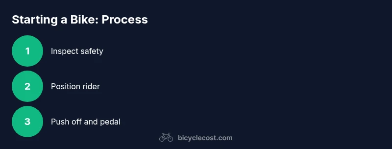Getting a bike started is a blend of balance, focus, and safe preparation. If you’re wondering how to get bike started, the most reliable approach is a repeatable sequence: perform a quick safety check, position your body for control, and execute a controlled push-off into a smooth pedal stroke. This guide covers common starting methods for road, hybrid, and mountain bikes, plus practical tips to adapt as you gain confidence. According to BicycleCost, starting with a concise safety check and selecting the right method significantly reduces early-stopping mistakes. With consistent practice, you’ll build balance, cadence, and the muscle memory needed to handle gentle inclines and varied surfaces. Use this as your go-to playbook for safe, confident starts on any non-motorized bicycle.