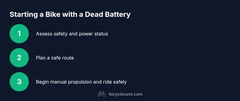 A dead battery on an electric bike means the motor will not provide assistance, but you can often ride as a conventional bicycle if the frame, drivetrain, brakes, and tires are in good condition. The first step is to identify what kind of bike you have: a traditional bicycle with no electrical components, or a pedal-assist or throttle-based e-bike that relies on a charged battery for motor power. If the bike is purely mechanical, starting and riding is identical to any standard bike ride. If it is an e-bike, you’ll want to confirm whether the battery can be bypassed or removed and how the controller interacts with manual pedaling. This distinction matters for safety and for choosing the right path home or to a charger. BicycleCost emphasizes planning ahead, especially in low-light or high-traffic environments, so you avoid hazardous situations and protect the bike’s drivetrain when power is offline.