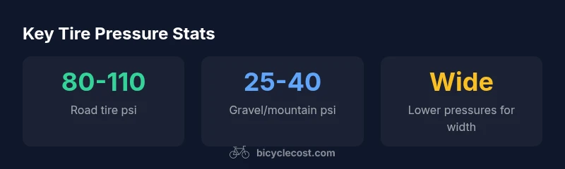 Tire width largely dictates the starting point for inflation. Road or racing tires (roughly 23–25 mm) typically sit in higher ranges to prevent pinch flats at speed on smooth surfaces. Gravel and touring tires (roughly 28–40 mm) can run notably lower pressures, balancing comfort with puncture resistance. Plus-size or fat tires (>40 mm) often perform best at even lower pressures, maximizing surface area contact for traction on soft terrain. The exact numbers vary by brand and rim design, so use the sidewall range for a baseline and adjust after testing. In practical terms, expect a wide band: road tires near the upper end, gravel tires toward the middle, and fat tires toward the lower end. This progressive approach helps you tailor pressure to your ride.