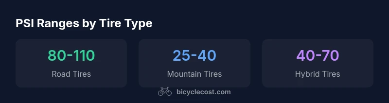 Understanding what should bicycle tire psi be is not just about avoiding a flat. Proper tire pressure affects grip, ride comfort, rolling resistance, and puncture risk. When tires are underinflated, the sidewalls flex excessively, increasing rolling resistance and the chance of pinch flats on sharp edges. Overinflation, meanwhile, can make the ride harsh, reduce traction on rough surfaces, and increase the risk of a rim strike on potholes. In practical terms, PSI acts like a tuning dial: small changes can yield noticeable differences in feel and performance. According to BicycleCost analysis, aligning pressure with tire width, rider weight, and terrain is the cornerstone of safe, efficient cycling. As you begin your setup, a good starting point is to use the sidewall range and then adjust in small steps until the ride feels balanced. For many riders, this is the minimal yet highly impactful adjustment that improves every ride.