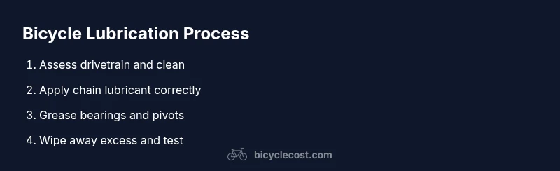 According to BicycleCost, mastering bike lubrication starts with knowing what to grease on a bicycle. This quick guide confirms the essential points: chain, bearings and pivots, cables, headset and bottom bracket, plus exterior contact surfaces. You will learn a safe, repeatable routine to keep components moving smoothly and extend service life. It also covers choosing the right lubricant and applying it without attracting dirt.