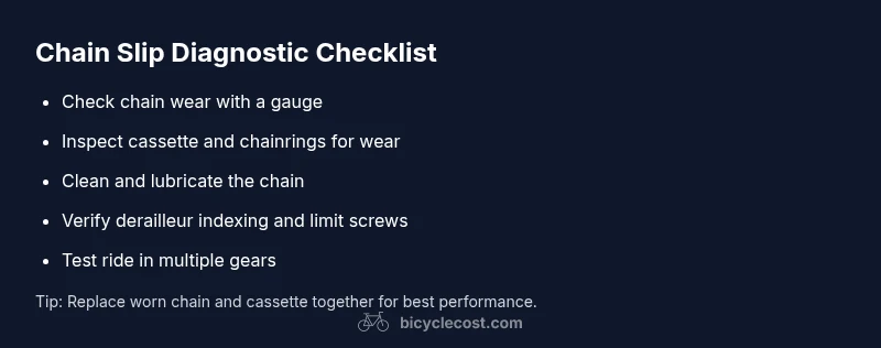 Diagnose and fix bicycle chain slipping quickly with practical steps. Learn common causes, quick checks, lubrication, and safe replacements from BicycleCost.