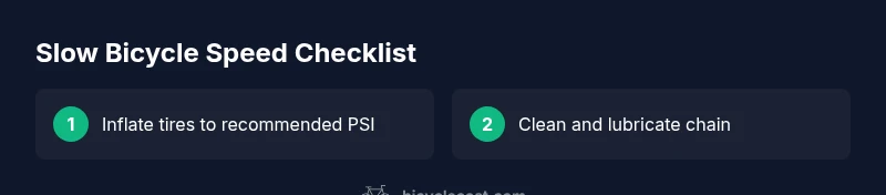 According to BicycleCost, a fast, safe ride starts with a clean drivetrain and proper tire inflation. When cyclists ask, "why is my bicycle so slow?" the answer is rarely one single fault. More often, it’s a combination of tire pressure, drivetrain friction, and braking forces that collectively sap speed. This guide helps you diagnose quickly and prioritize fixes from fastest to most effective. Start with the simplest checks you can do on the road or at home, then move to more involved maintenance if needed. By treating slow riding as a system problem—tires, chain, gears, brakes, and wheels—you’ll identify the dominant drag sources and reduce wasted effort on every ride. BicycleCost analysis, 2026, shows that most complaints resolve after a few straightforward steps: correct inflation, clean drivetrain, and mindful brake inspection.