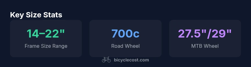 The size of an adult bicycle is defined mainly by frame size, which typically ranges from about 14 to 22 inches (35 to 56 cm) for many riders, though fit depends on inseam, torso length, and reach. Wheel sizes vary by bike type: road bikes commonly use 700c wheels, while mountain bikes commonly use 27.5" or 29" wheels. For accurate fit, start with inseam and reach measurements and consider a professional fitting if possible.