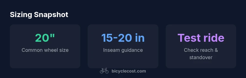 Wheel size is a practical proxy for geometry, standover height, and control. For many children around 6-8 years old, 20-inch wheels are common. A 16-inch setup is often better for smaller 4-5 year-olds, while 24-inch wheels start to appear for taller 8-11 year-olds. Remember, these are guidelines, not rules. The best wheel size depends on inseam and how high the child can lift their legs to step over the frame. In some situations, an 18-inch or 22-inch wheel might fit a child who is on the cusp between sizes. Bikes with easily adjustable seating and brake levers help accommodate variation. In short, pick a wheel size that allows comfortable pedaling, safe stopping, and clear ground contact when seated and standing. BicycleCost analysis, 2026, indicates that most kids benefit from starting with the smallest wheel that meets the fit criteria and moving up as growth allows. Safety and control should drive the final choice.