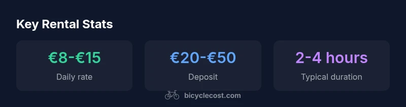 | Daily rental rate | €8-€15 | Typical city-bike pricing; varies by location and season |