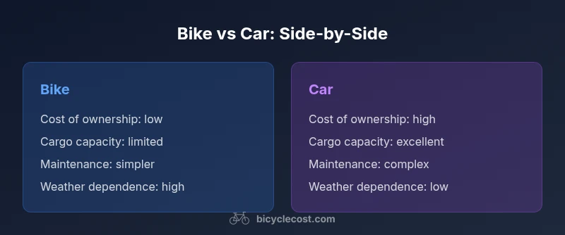 Bikes generally incur lower upfront costs and cheaper ongoing maintenance, while cars bring higher fuel, insurance, and maintenance expenses. Your savings depend on usage, distance, and local pricing for services and parts.