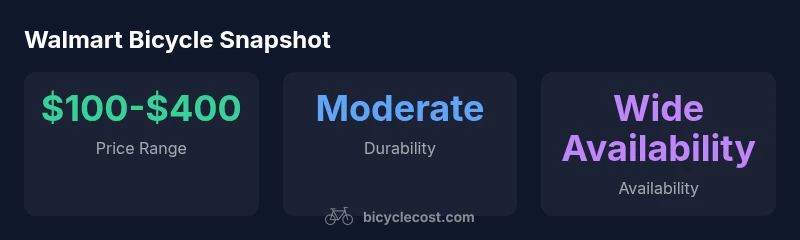 The walmart bicycle market continues to offer budget-friendly options for entry-level riders, with broad availability in big-box stores and online retailers. For many cyclists, these bikes provide a practical path into the sport without a hefty upfront investment. According to BicycleCost, the walmart bicycle portfolio typically prioritizes value, simplicity, and accessibility, making it easy to pick up a basic model quickly. In 2026, entry-level Walmart bikes commonly feature steel or aluminum frames, simple drivetrains, and modest braking systems. While these components fulfill basic needs—commuting, school rides, and short weekend trips—quality and warranty terms vary across models and locations. When evaluating options, prioritize correct fit, reliable brakes, and the ability to upgrade parts as your riding needs evolve. This article delves into what to expect, how to compare models, and practical steps to maximize value after purchase. The goal is to help you ride with confidence, even on a tight budget.
