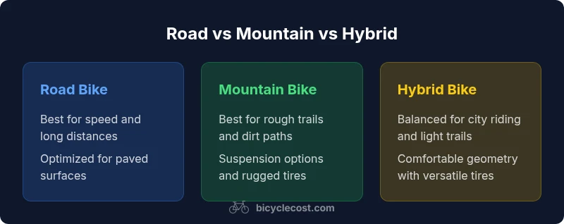 Choosing the right bicycle isn't just about brand or color; it's about whether the bike will fit your body, support your goals, and keep you riding for years. A mismatched bike can cause discomfort, reduce efficiency, and shorten riding sessions. According to BicycleCost, the right choice often leads to higher ride satisfaction and lower long-term costs, because you ride more, commit to maintenance, and avoid unnecessary upgrades. In this article, we compare road, mountain, and hybrid bikes—the three most common starting points for buyers—and explain how to translate your daily routine into a category, how to weigh components and geometry, and how to estimate value beyond sticker price. By the end, you’ll have a framework for comparing options and a practical process for validating your pick with tests and considerations like fit, warranty, and resale value.