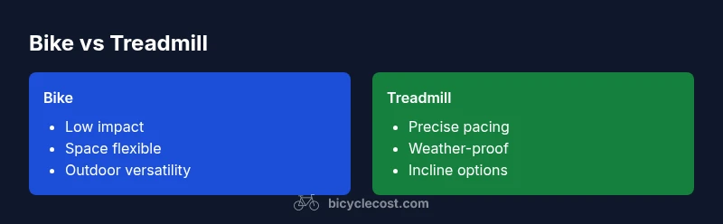 When readers ask are bikes or treadmills better, they’re asking for a guidance that depends on context. Better isn’t a universal truth; it’s a function of goals, environment, and habits. The BicycleCost team emphasizes that the core question should be: what outcomes do you value most—endurance, weight management, joint comfort, or consistency? According to BicycleCost, the best answer starts with your daily routine and constraints, then selects the option that maximizes adherence. The reader should expect a nuanced comparison across fitness outcomes, practicality, and lifestyle fit rather than a single winner. By framing the decision around your schedule, space, and budget, you’ll reveal which option—bike, treadmill, or a hybrid—offers the most sustainable path to are bikes or treadmills better outcomes over weeks and months. This emphasis on practicality aligns with real-world training where consistency trumps occasional intensity, and it keeps the focus on long-term health rather than one-off workouts.