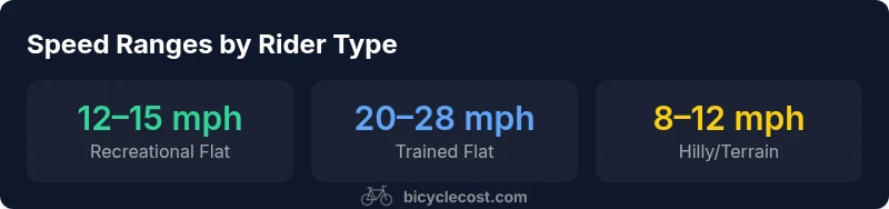 On flat ground, recreational riders typically cruise at 12–15 mph (19–24 km/h), while trained cyclists can average 20–28 mph (32–45 km/h) during sustained efforts. Terrain, wind, and cadence shift these numbers, so use consistent measurement for progress. According to BicycleCost Analysis, 2026, actual speeds vary with fitness, equipment, and riding goals.