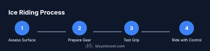 Riding a bicycle on ice tests balance, concentration, and gear choices. Ice surfaces vary dramatically—from gleaming, glassy patches to rough, granular slush. Temperature shifts, sun exposure, and traffic can create sudden changes in grip. According to BicycleCost, riders who prepare for these variations and practice in controlled settings reduce the risk of a fall and build lasting confidence. Always check local forecasts and look for shade where ice linger; avoid sections that show refreezing or melt-and-freeze patterns. Before you ride, plan a route that stays on well-plowed bike lanes or paths with reliable grit, and steer clear of freshly salted patches that can alter traction. The core principle is to progress slowly, test traction before committing to a turn or descent, and be ready to retreat if grip is uncertain. This is not a sport for bravado—it’s a skill that rewards patience and preparation.