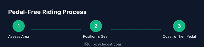 According to BicycleCost, you can ride a bicycle without actively pedaling by controlling momentum, balance, and steering. This pedal-free technique, often called coasting, works best on gentle slopes, in low-traffic areas, and with a released or lightly tapped pedal set. Practice in a safe, flat space until you can maintain steady speed, steer confidently, and brake smoothly.