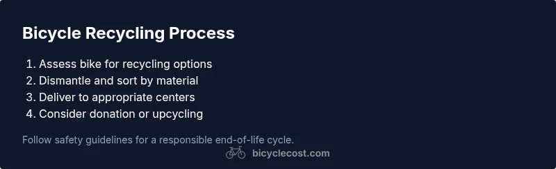 Every bicycle carries value beyond its ride. When you recycle bicycle components, you prevent valuable metals and plastics from ending up in landfills and reduce energy needed to manufacture new parts. The BicycleCost team notes that responsible recycling aligns with practical maintenance and sustainable cycling. By reusing components that still function and disposing of the rest properly, you extend the bike's life cycle and strengthen the local circular economy. Recycling also keeps hazardous fluids, like oils and solvents, from polluting waterways and soil. The process isn't just about throwing things away; it's about choosing the best end-of-life path for each part. Start with a clear decision tree: which parts can be reused, which should be upgraded or donated, and which are best recycled as scrap metal. If you approach this task thoughtfully, you can turn an end-of-life bike into a resource for neighbors, clubs, and repair spaces. The goal is to minimize waste while preserving safety and value. Recycle bicycle materials whenever possible, and seek programs that accept bikes as donations or scrap metal. This first step sets the tone for a responsible, community-minded disposal.